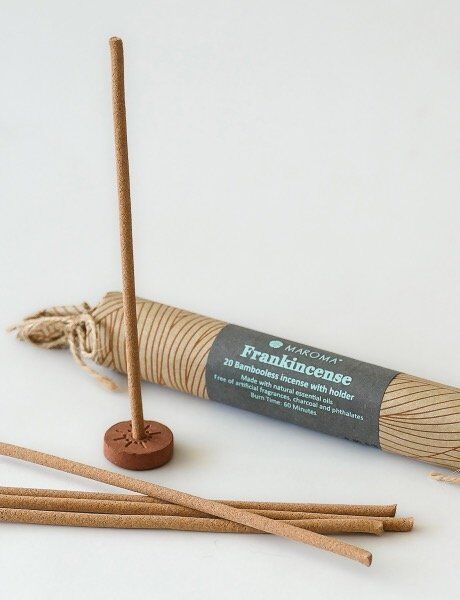 The rich, ancient aroma of frankincense, made with pure olibanum and natural resins, fosters deep relaxation and spiritual clarity. Without a bamboo core, this bambooless incense burns smoothly and purely, allowing the full depth of its warm, resinous scent to unfold. Long revered for its meditative and purifying qualities, frankincense creates a serene atmosphere ideal for reflection, prayer, or grounding rituals. Handcrafted with wood powder and natural resins, infused with 100% natural fragrance—free from charcoal for a clean, lasting burn. Includes a holder. Burn time: 60 minutes per stick.