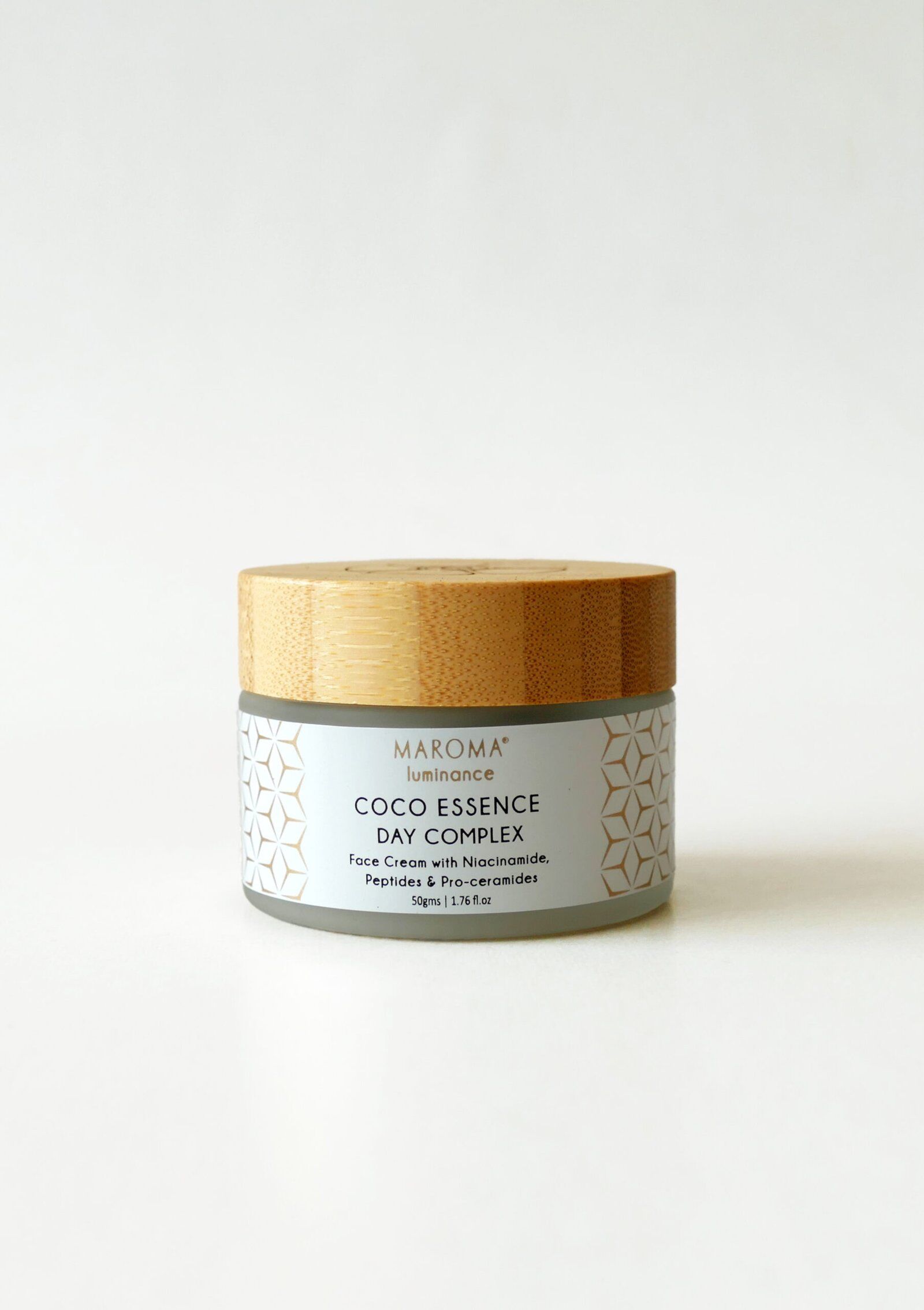 Coco Essence Day Complex is a lightweight daily moisturizer that strengthens the skin barrier while restoring softness and balance. Organic Coconut Oil and Niacinamide work together to nourish, smooth, and refine skin texture without heaviness.Advanced barrier-supporting actives—peptides, pro-ceramides, and cholesterol—help improve resilience against daily environmental stressors, while Indian Barberry and Vitamin C promote clarity and a healthy, even-toned glow.