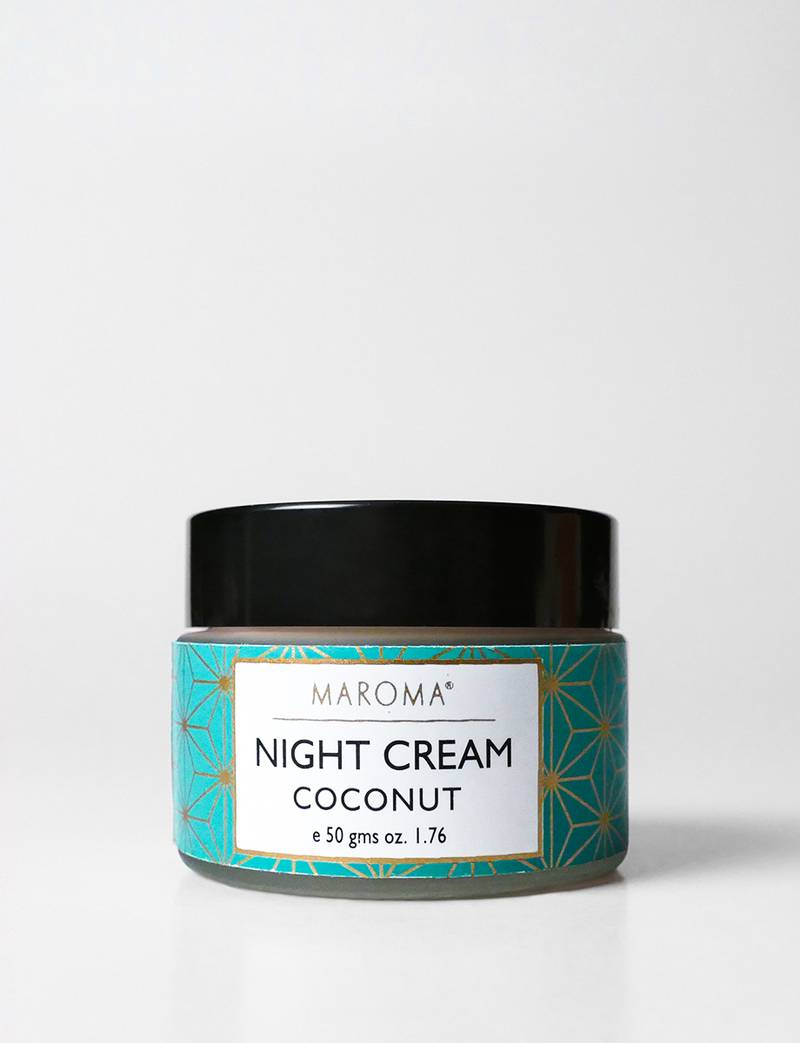 - Pamper your skin each night with our 100% Natural Coconut Night Cream, designed to deeply nourish and restore. Organic cold-pressed Coconut Oil, combined with Aloe and Cucumber Extracts, provides soothing hydration that helps soften and calm your skin after a long day. Shea and Mango Butters add a rich, creamy texture, sealing in moisture for a rejuvenated feel by morning.