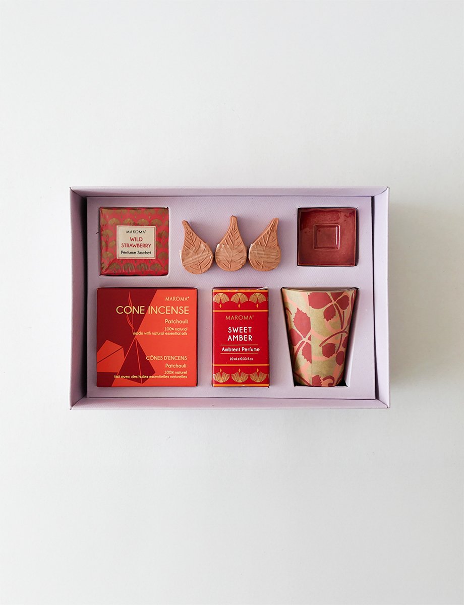 The Enchanted Amber & Earth Collection combines a range of fragrances for a well-rounded home experience. Sweet Amber sets a warm base, patchouli cones add depth, and terracotta diffusers provide a low-maintenance way to keep rooms gently scented. A wild strawberry sachet adds a fresh pop to drawers or wardrobes, while the votive brings a soft finishing touch.