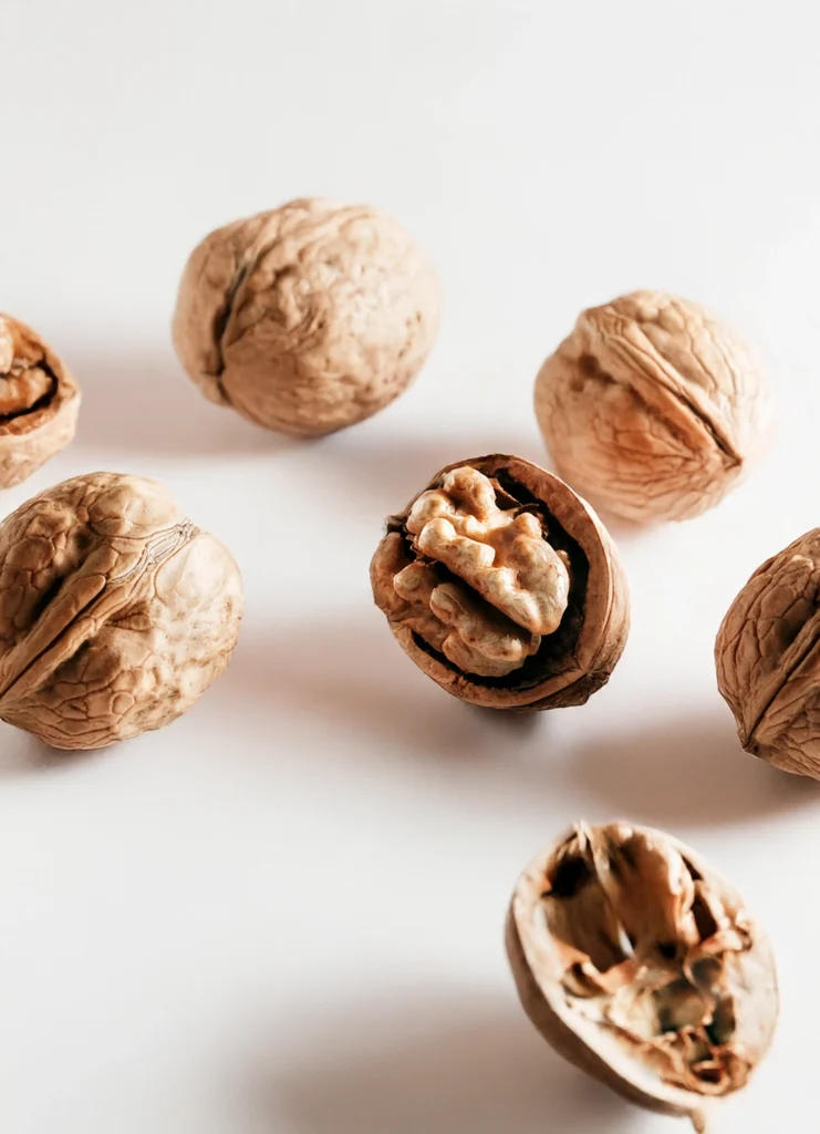 Finely ground walnut shell granules gently exfoliate, sweeping away dead skin cells with care.