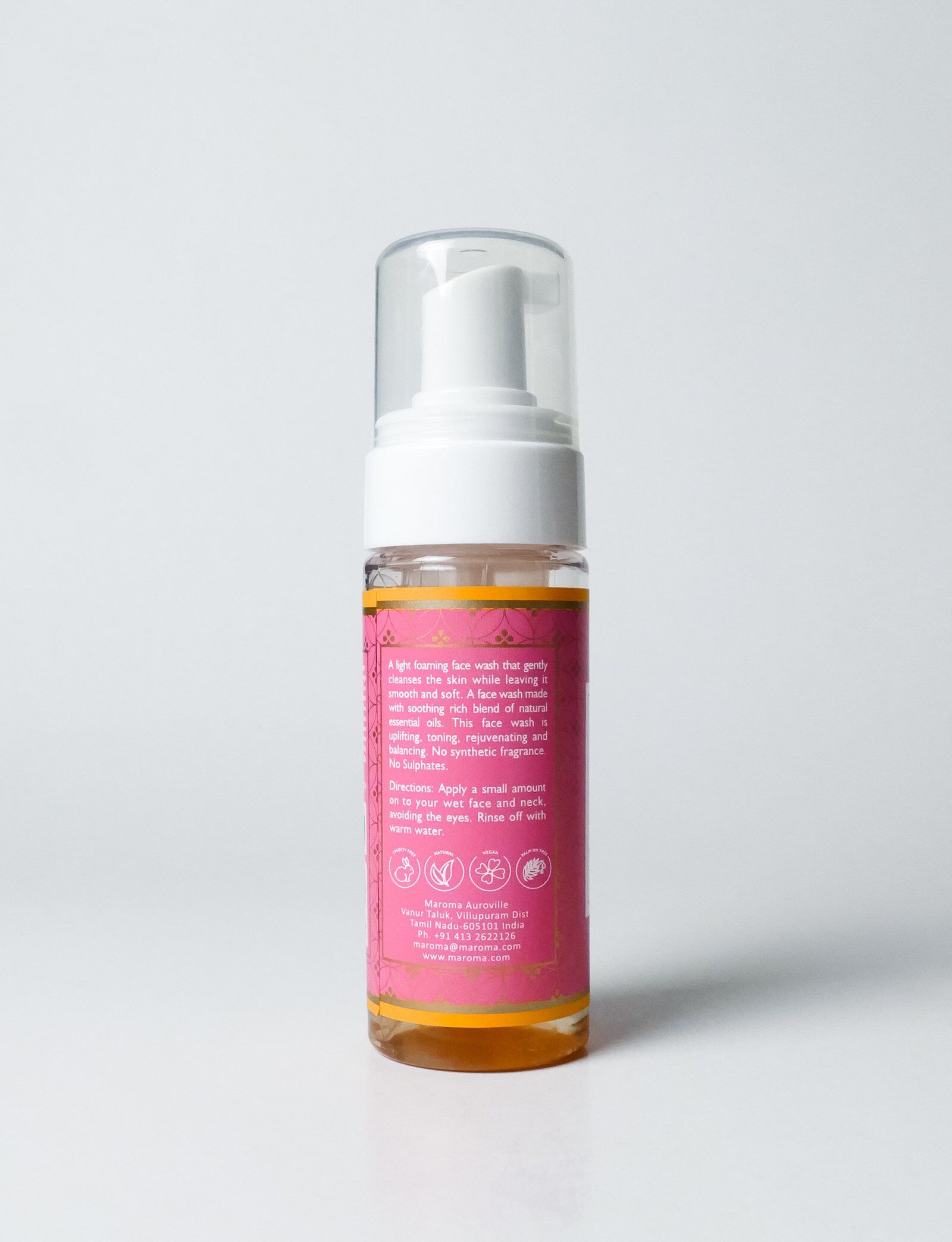 Begin with a gentle pump of airy foam into your palms — a breath of nature’s essence, crafted in Auroville.