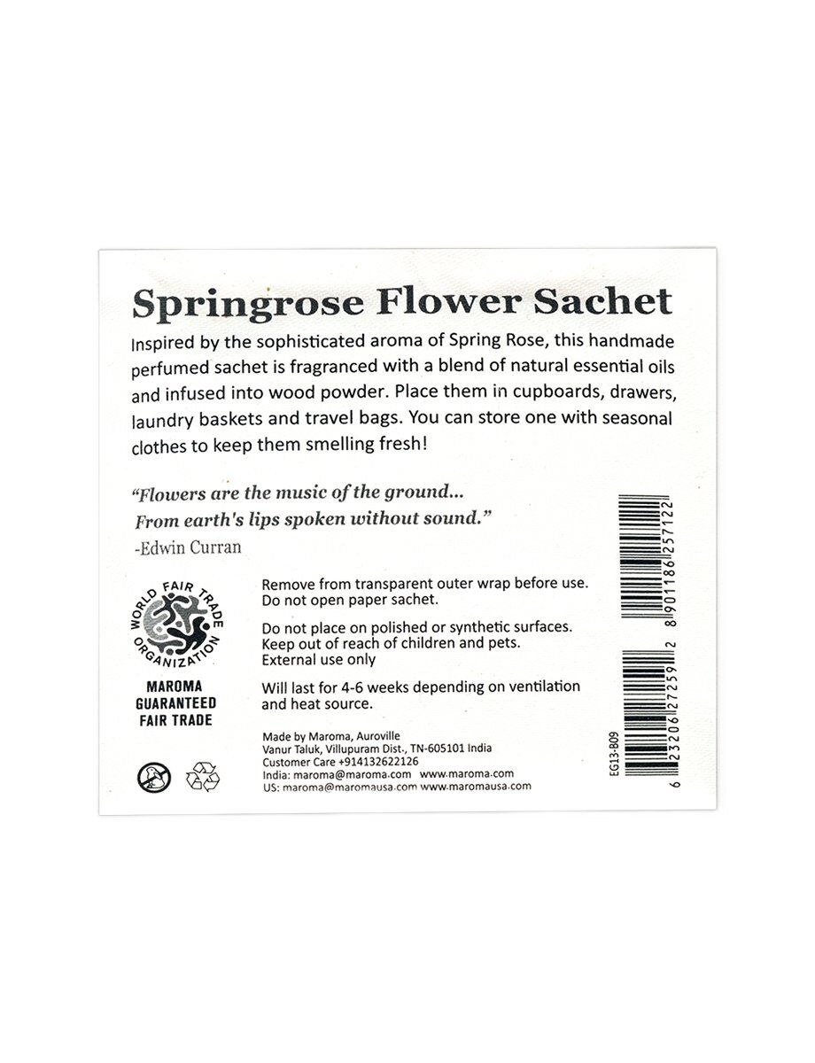 Classic and timeless, Spring Rose brings the gentle romance of blooming roses into your spaces. Infused with natural essential oils in wood powder, this handmade sachet delicately perfumes linens, cupboards, and wardrobes.