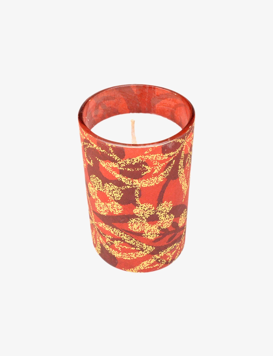 A lively burst of juicy mandarin brightened with a hint of warm spice, this votive fills your space with a vibrant and uplifting fragrance. Hand-poured into patterned motif glass, it adds both beauty and aroma to your ambiance.