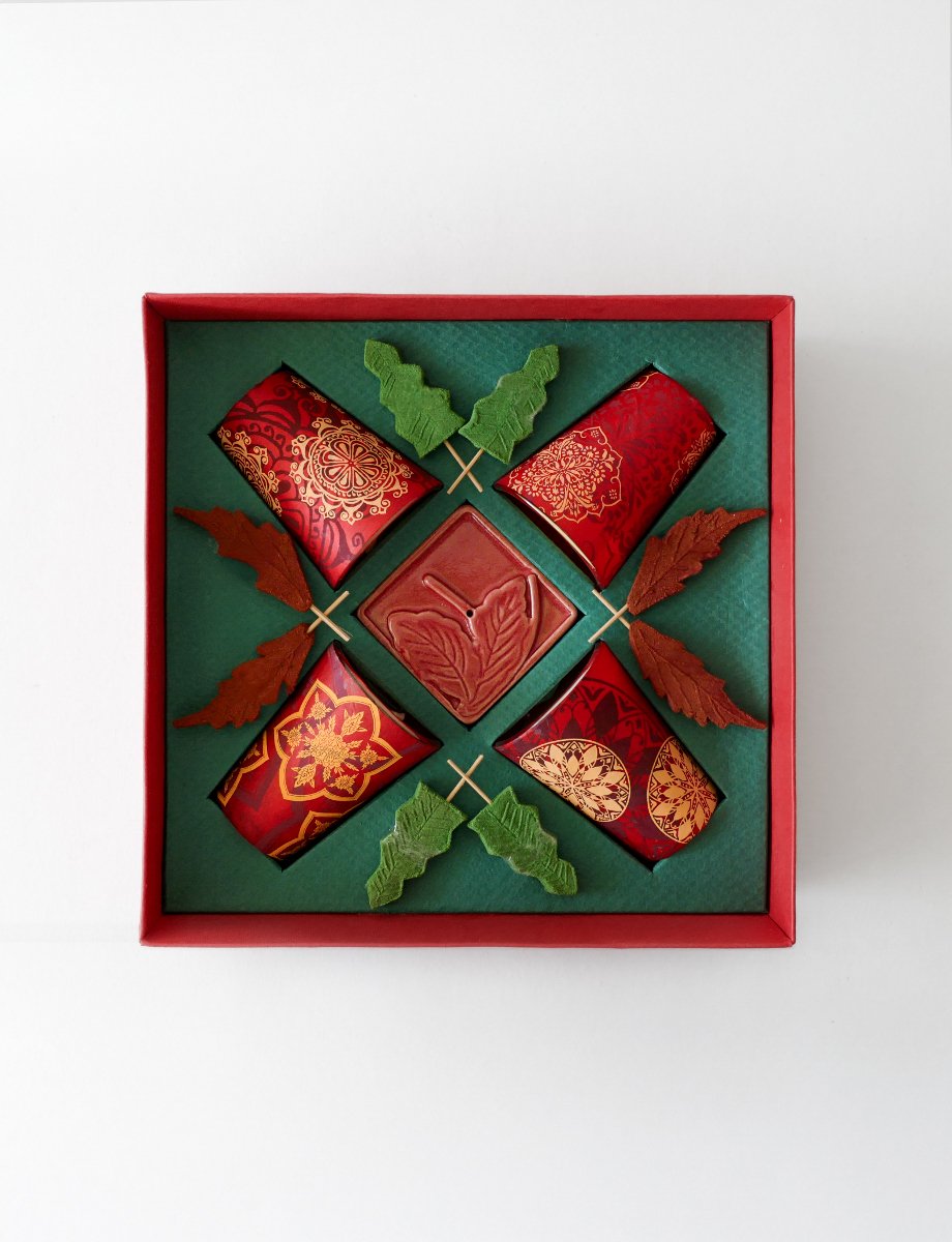 The Holiday Hearth Fragrance Set offers an easy way to bring seasonal warmth into your home. With both leaf-shaped and Christmas-tree incense, you get a mix of fresh and festive scents. Paired with four scented votives and a classic incense holder, it’s a simple, complete set for creating a cosy holiday atmosphere.