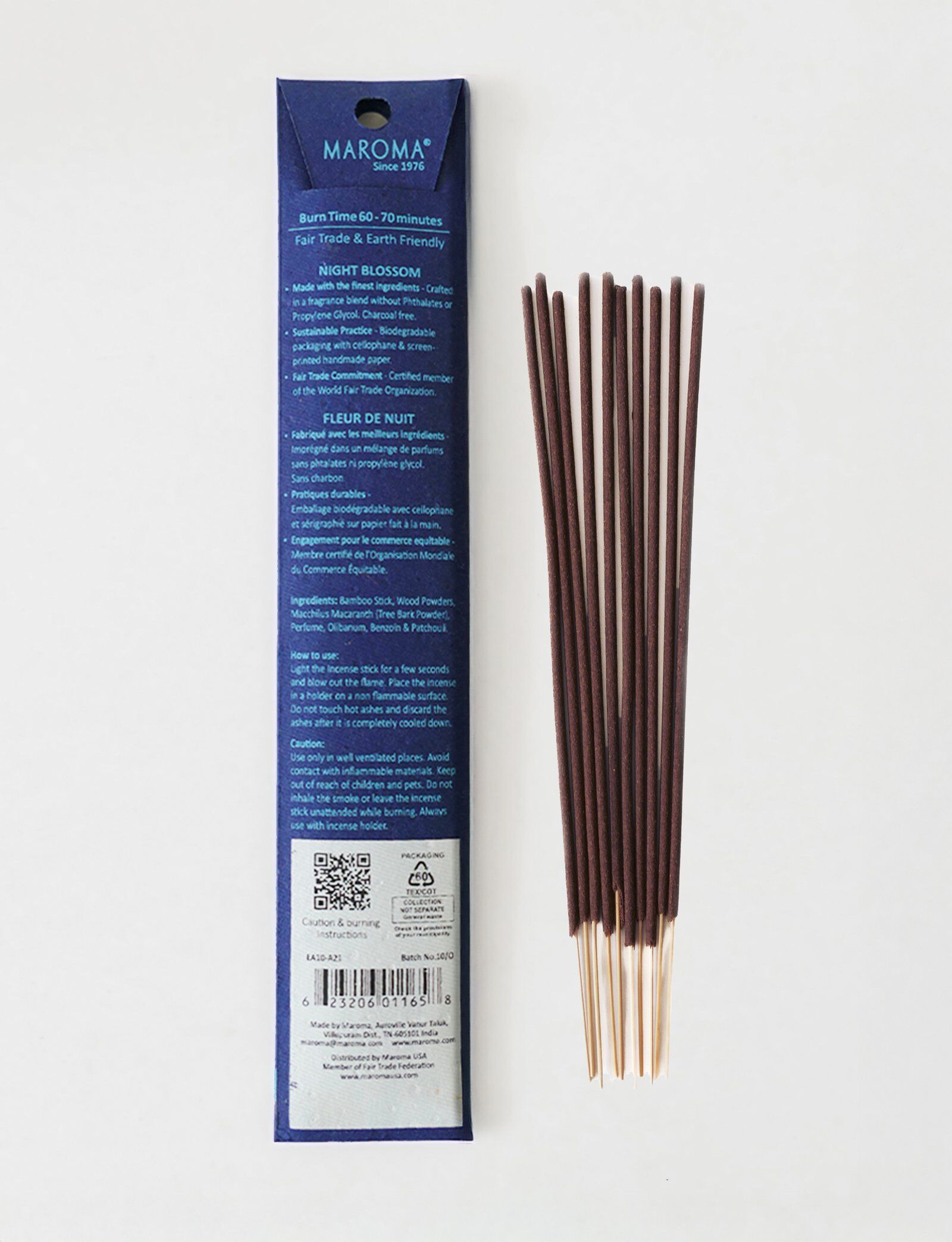 - Pack of 10 incense sticks. A deep, alluring blend of olibanum, enriched by the warm, balsamic sweetness of benzoin and the earthy depth of patchouli. This captivating fragrance invokes a sense of mystery and calm, perfect for evening rituals. Hand-rolled with wood powder and natural gum resin for a clean, charcoal-free burn.