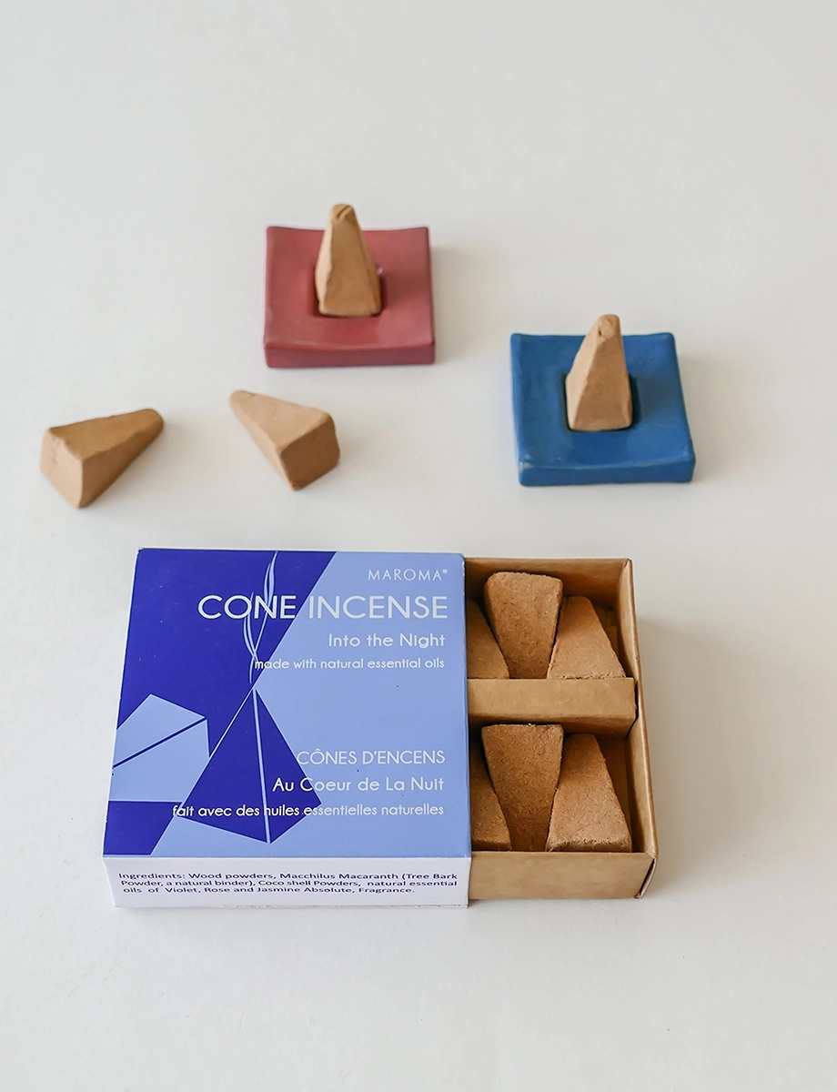 A dreamy blend of violet, rose, and tuberose, this fragrance unfolds like a quiet evening, with soft floral notes that linger in the air. It creates a peaceful, intimate atmosphere, perfect for unwinding or setting the mood. Each cone burns cleanly, leaving behind only the faintest trace of ash.