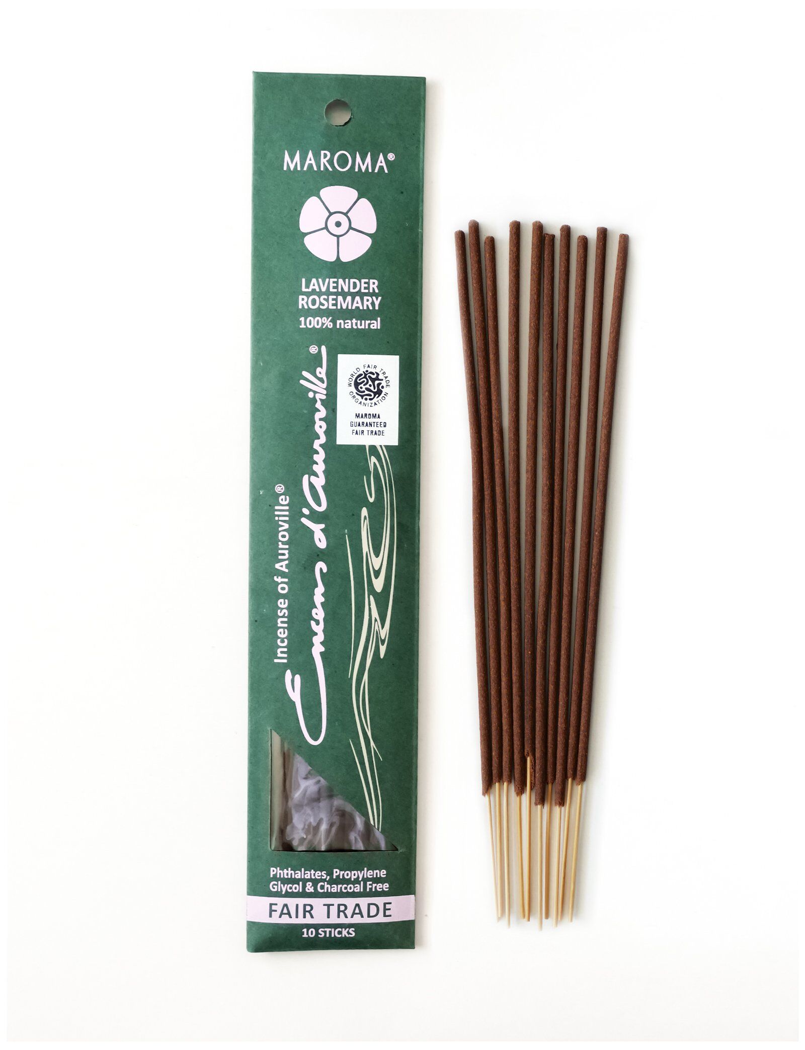 - Pack of 10 incense sticks. The soothing floral notes of lavender meet the crisp, green aroma of rosemary in this balancing blend. While lavender promotes relaxation, rosemary adds a refreshing clarity, making it perfect for moments of stillness or focus. Handcrafted with wood powder and natural gum resin, these charcoal-free incense sticks burn cleanly, filling your space with a pure, grounding scent.