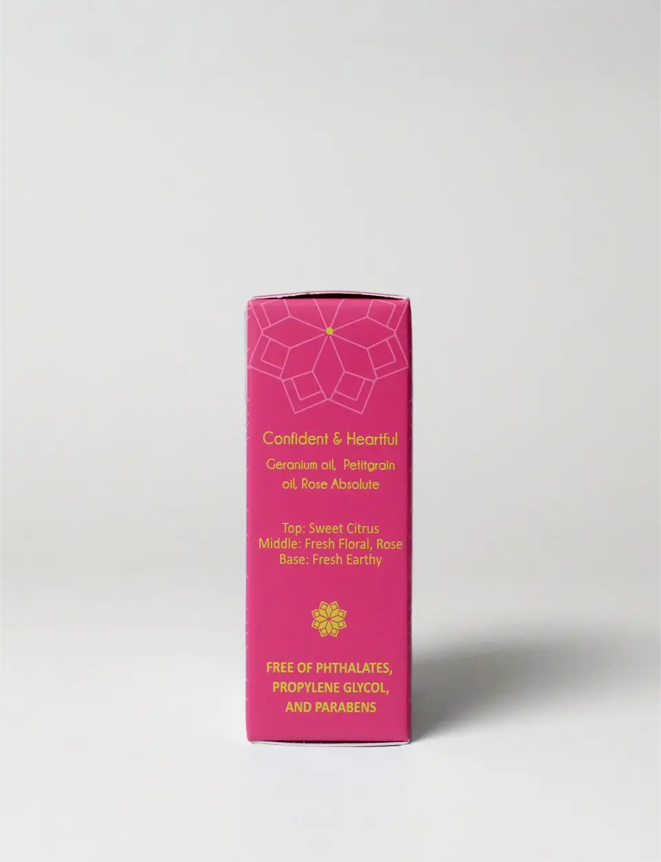 - Middle: Petal-fresh rose absolute with soft green herbs