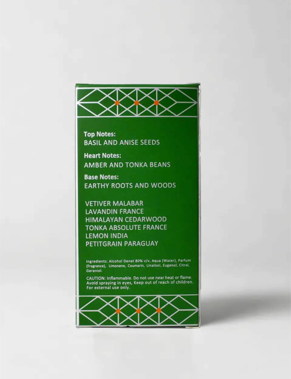 Basil infused with Anise cuts through with green intensity, unfolding into the velvety warmth of Amber and Tonka Bean. As it settles, earthy roots and dry woods add depth, leaving behind an elegant, grounded trail. A scent of raw refinement—bold yet effortlessly sophisticated.