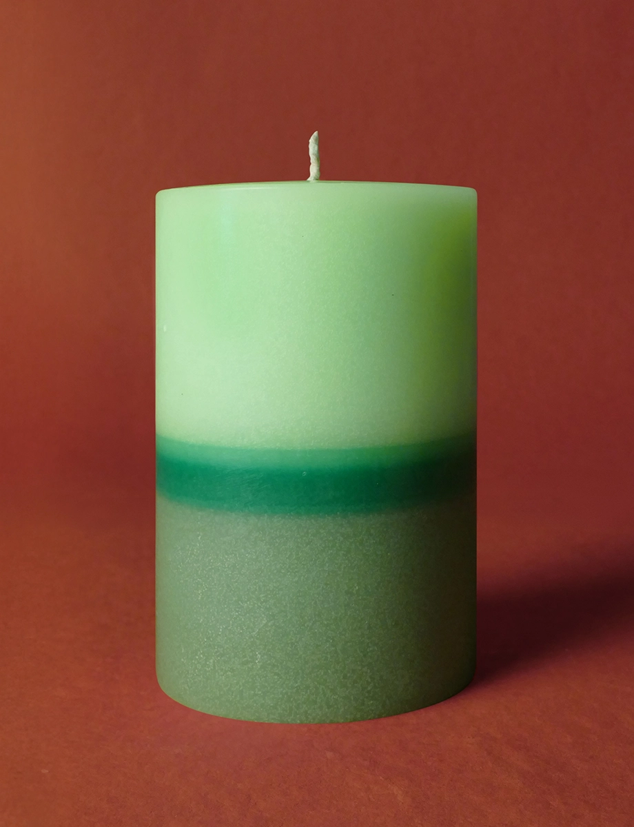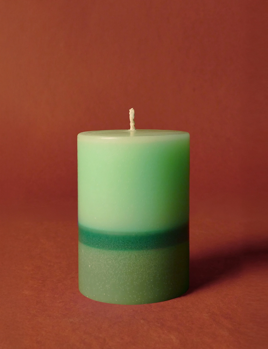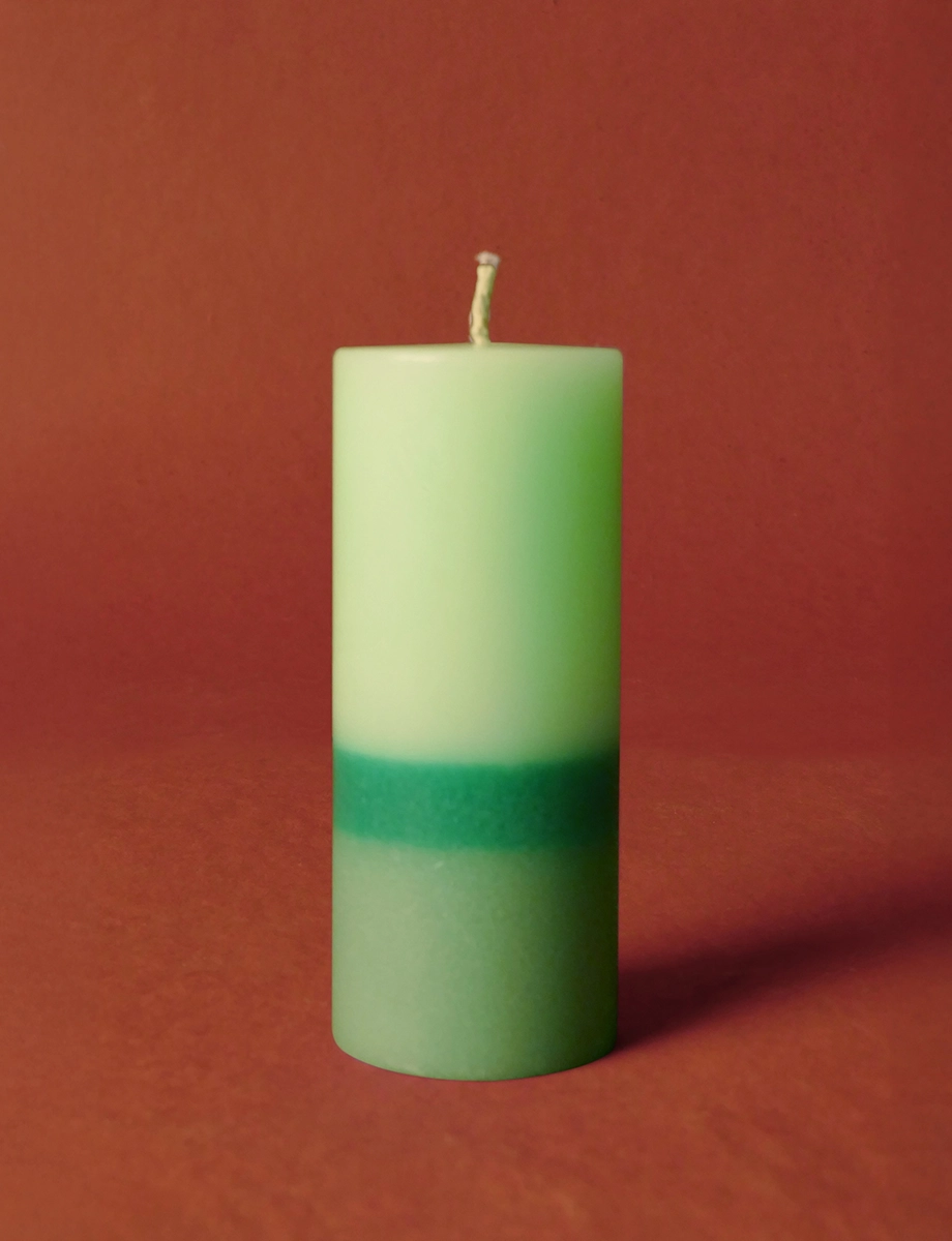 This striking green layered candle moves from light to dark shades, evoking depth and mystery. The exotic opium fragrance creates an alluring and bold atmosphere. Available in 600g, 300g, and 150g sizes.