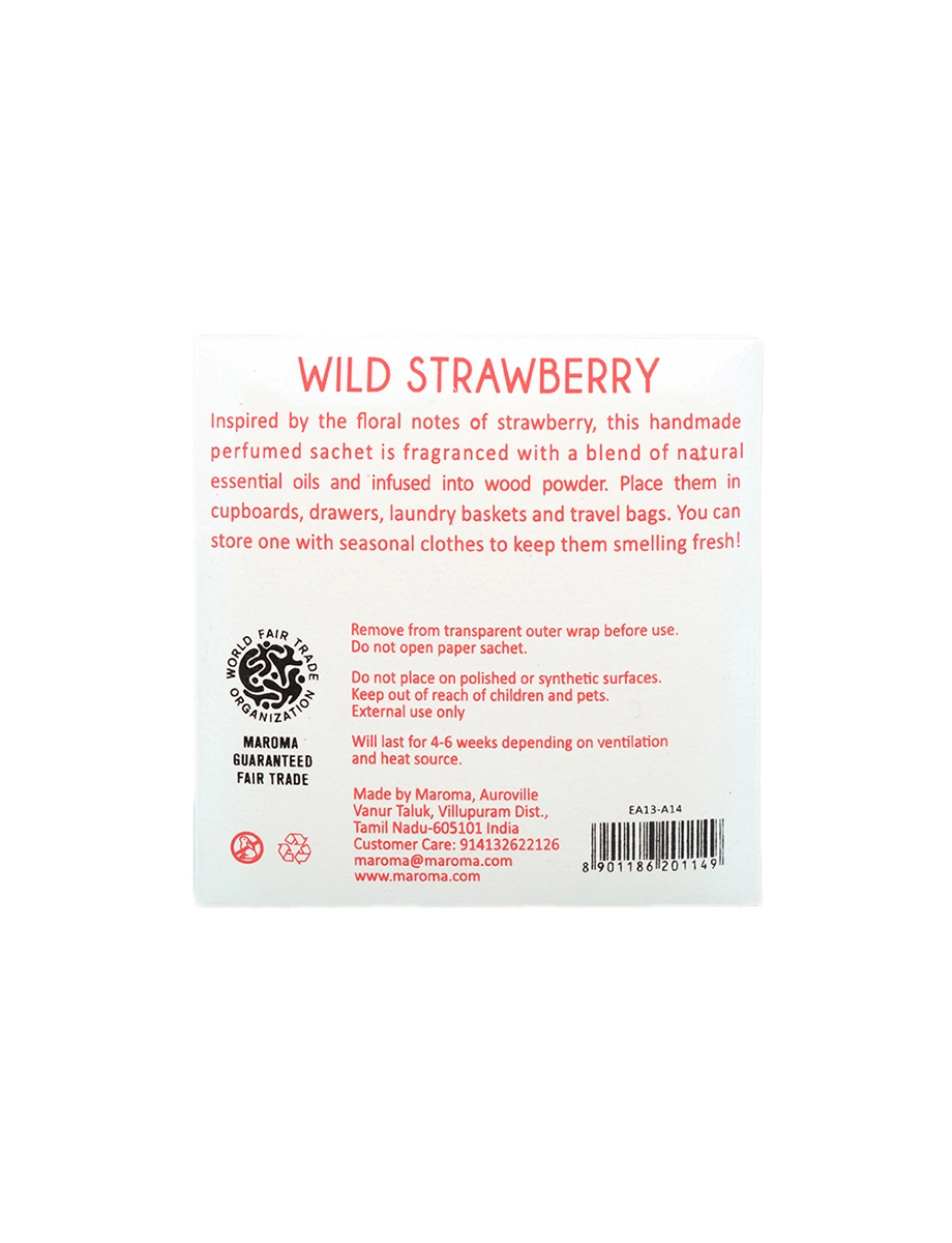 Lush and ripe, Wild Strawberry adds a playful burst of fruity fragrance to any space. Handmade with natural essential oils infused into wood powder, this perfumed sachet is perfect for drawers, wardrobes, and storage boxes, ensuring a fresh, sweet scent lingers.