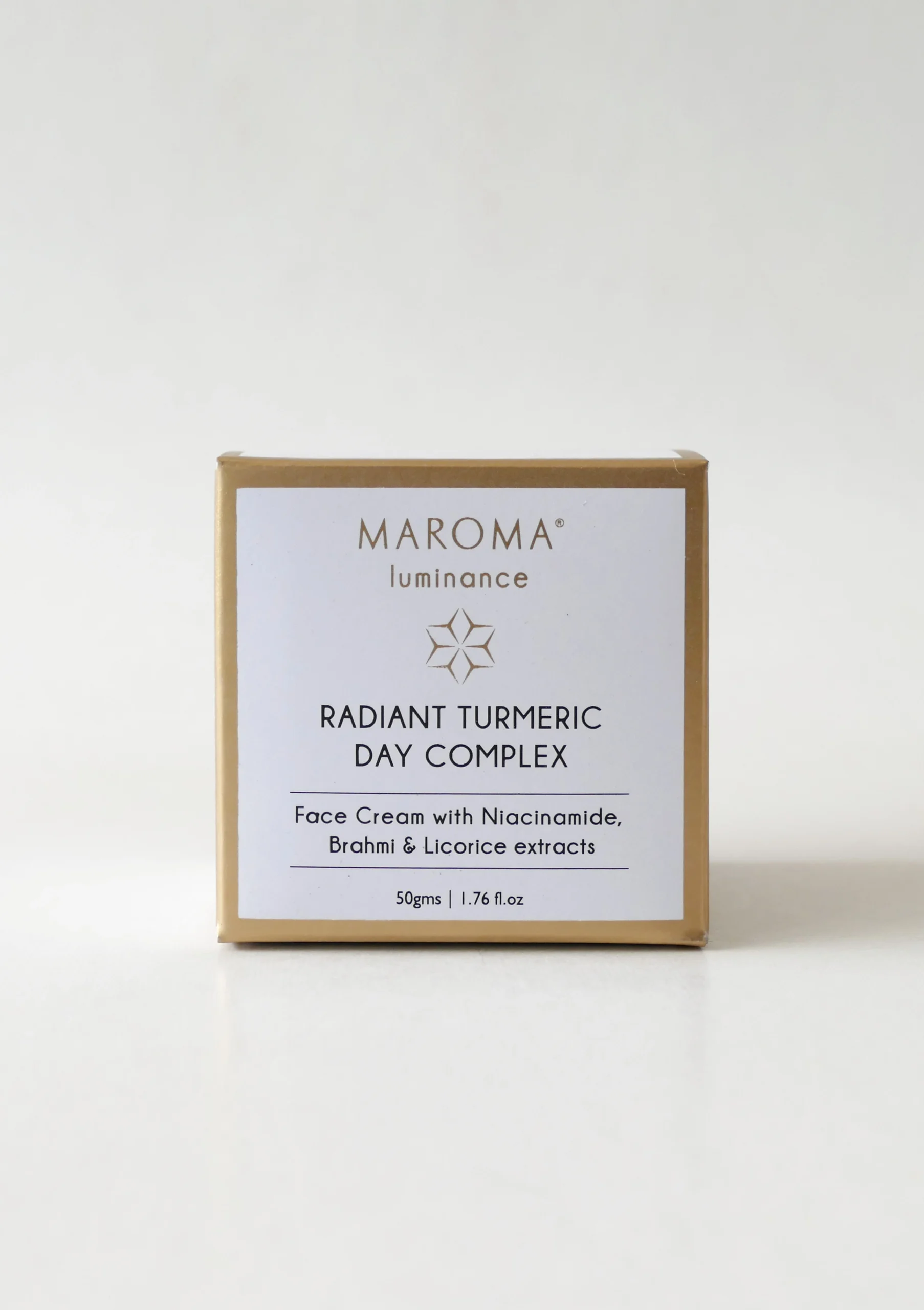 Designed to illuminate and even the complexion, this lightweight day complex blends Turmeric Root Extract with Niacinamide to visibly brighten skin, reduce dullness, and support a healthy skin barrier.A refined infusion of Brahmi, Licorice, Manjistha, and Bhumyamalaki extracts helps calm inflammation, enhance clarity, and promote a more balanced skin tone, while Vitamin C (Sodium Ascorbyl Phosphate) offers antioxidant protection and boosts natural radiance.