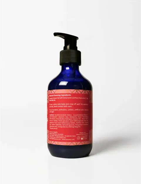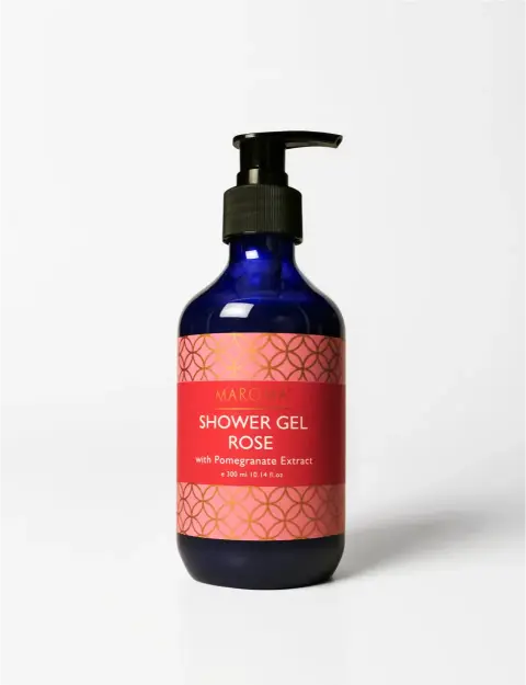 Pomegranate Seed Oil and Cocoa Butter deeply nourish your skin, while Geranium and Ylang Ylang Oils create a soothing, aromatic escape. A delicate touch of Rose lingers with its timeless fragrance, creating a fresh sensation that rejuvenates both your skin and senses.