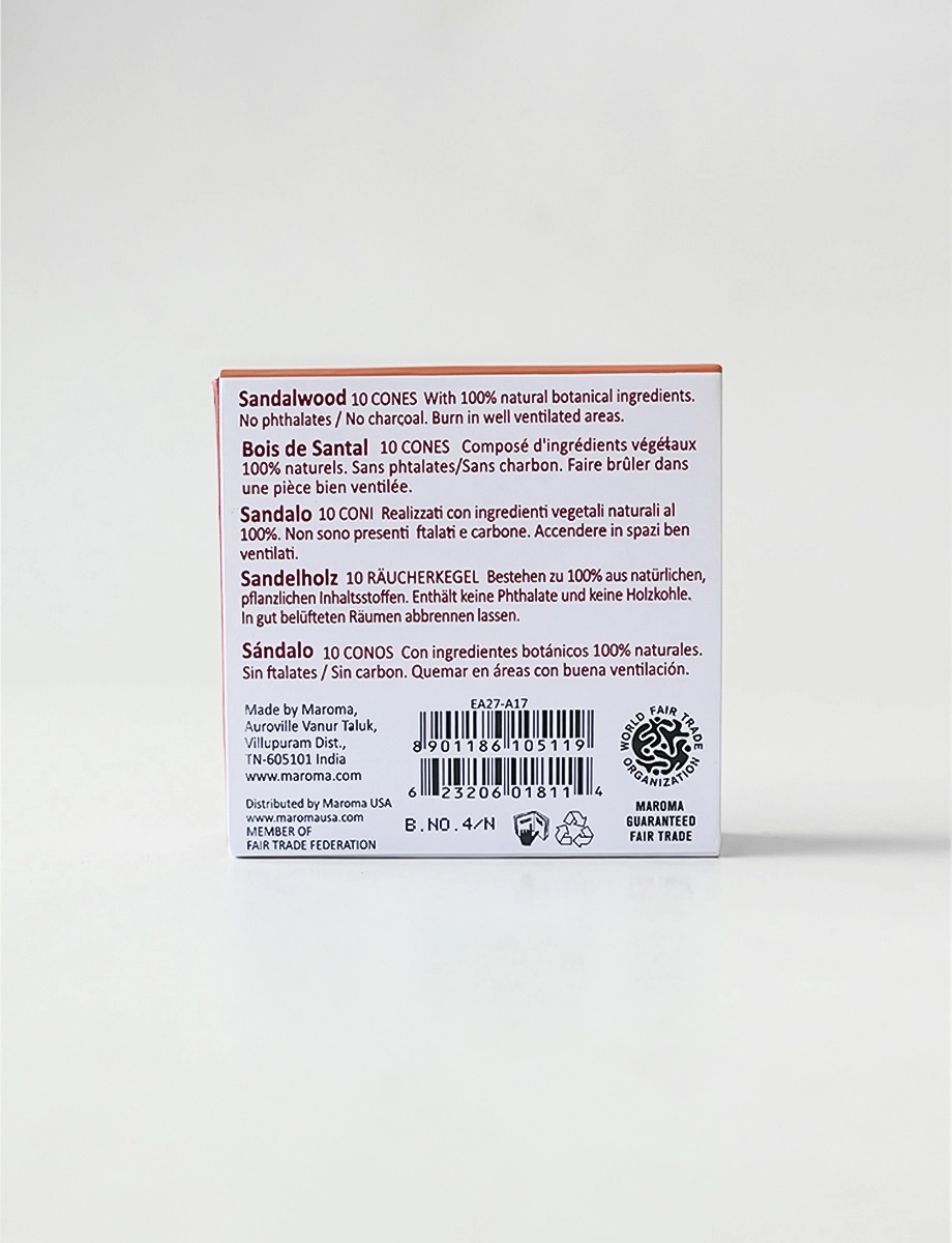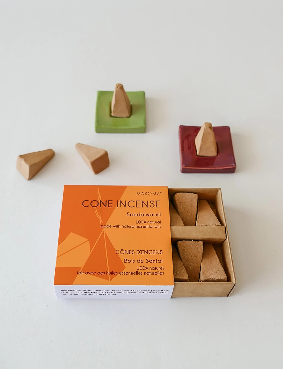 Pack of 10 incense cones. The rich, creamy scent of pure sandalwood, with its soft, woody aroma and subtle sweet notes. Revered for its calming and meditative qualities, this fragrance creates a serene atmosphere, perfect for relaxation or reflection. Compact and neat, each cone delivers a lasting, pure aroma with minimal ash.