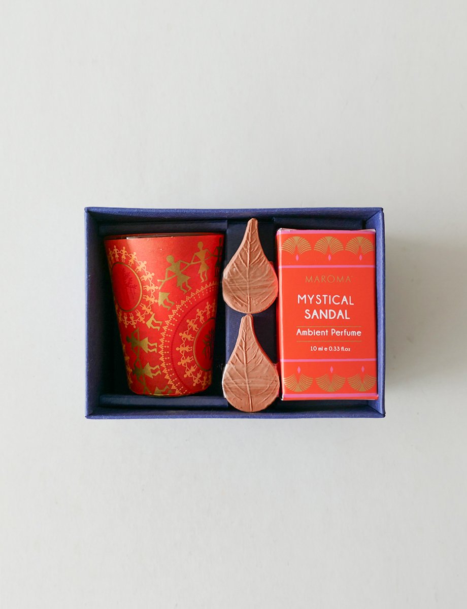 The Sandalwood Serenity Gift Set brings a soothing sense of calm to any space. Mystic Sandal offers a warm, comforting aroma that lingers beautifully, while the terracotta diffusers slowly release fragrance naturally and effortlessly. The vegetable wax votive ties the set together with a gentle, inviting glow—perfect for creating a relaxed atmosphere at home.