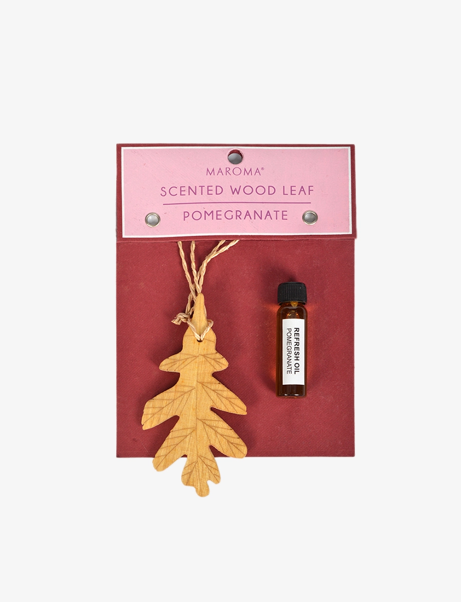 Shaped like a white oak leaf, this wooden diffuser carries the vibrant, juicy aroma of pomegranate. A few drops of the perfume oil soak into the wood, releasing a scent that’s both fresh and slightly sweet, like ripe fruit on a crisp morning. Hang it wherever you want a natural touch of fragrance—it’s a little detail that makes all the difference.