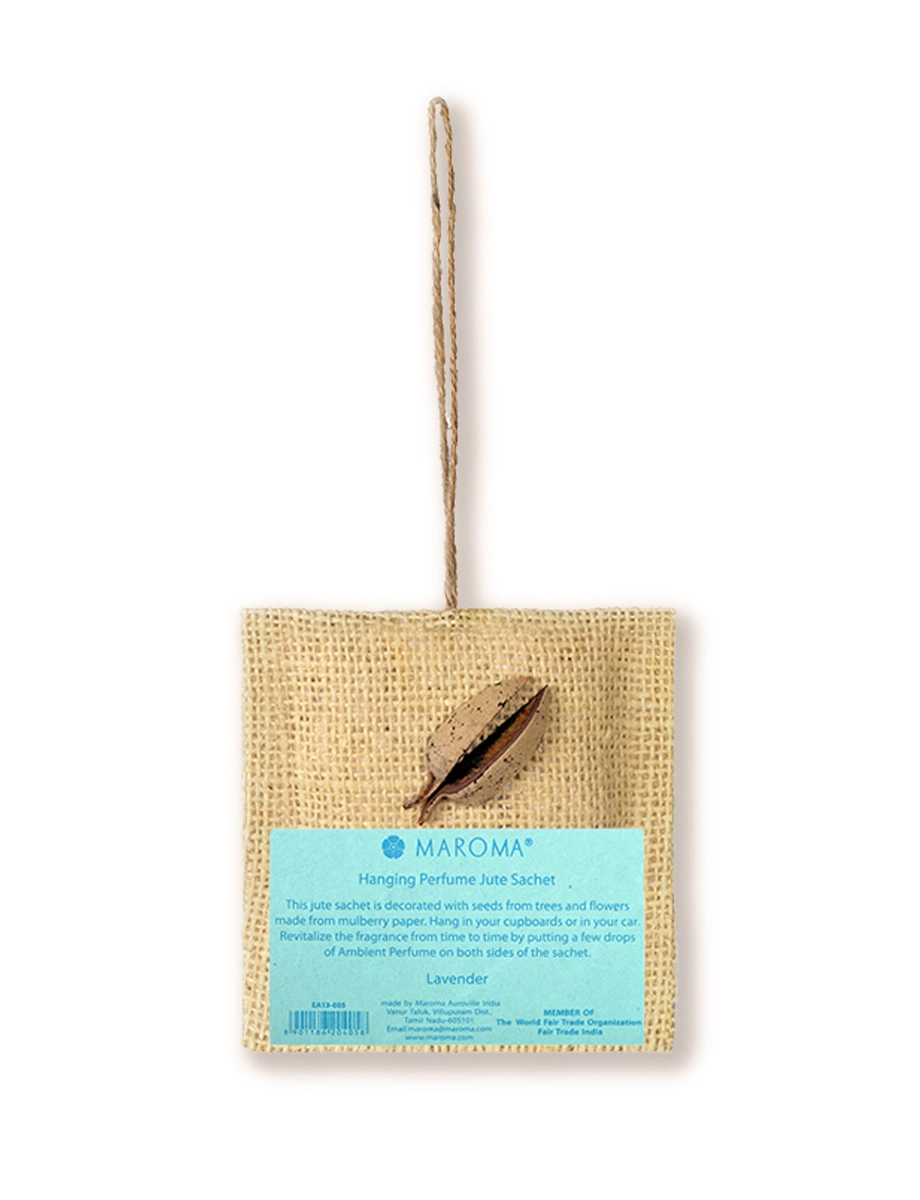 This jute sachet is decorated with seeds from trees and flowers drived from sola plant. Hang in your cupboards or in your car. A 5ml refreshener perfume oil enclosed.