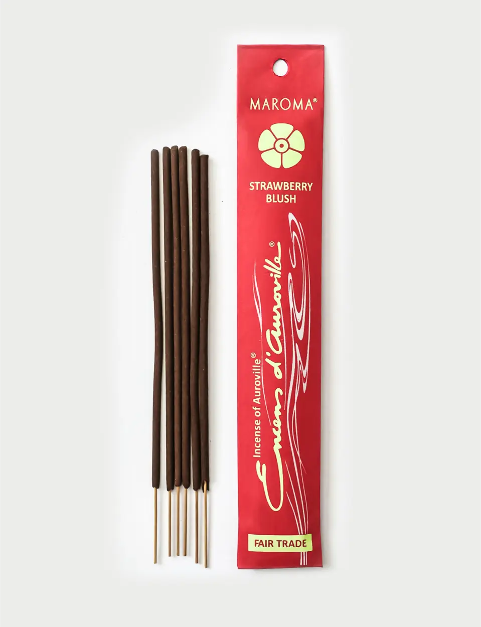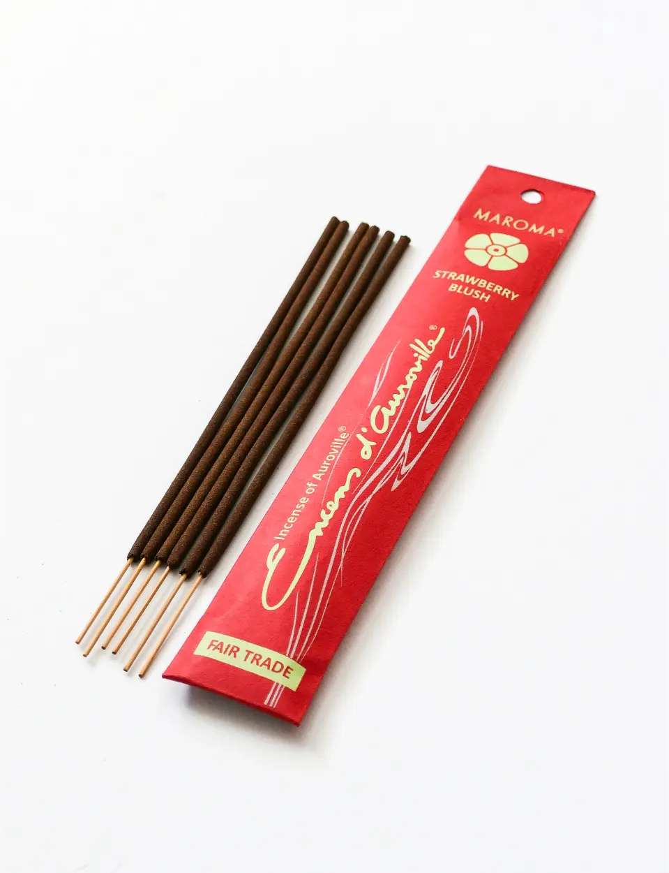 - Pack of 10 incense sticks. A playful yet soothing blend of juicy strawberry, soft palmarosa, aromatic lavandin, and bright sweet orange. The delicate floral notes balance the fruity sweetness, creating a fresh, uplifting aroma that feels both joyful and comforting. Each 8″ incense stick is handcrafted in-house with wood powder and natural gum resin, completely free from charcoal for a clean and natural burn. Infused with our proprietary fragrance, blended with pure essential oils, it fills your space with a light, cheerful scent.