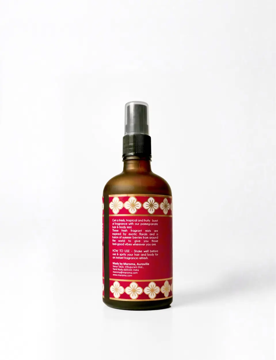 This mist combines the vibrant freshness of ripe Pomegranate with the delicate elegance of Rose, creating an alluring yet subtle fragrance that refreshes, hydrates, and noursihes your skin and hair without overpowering the senses.